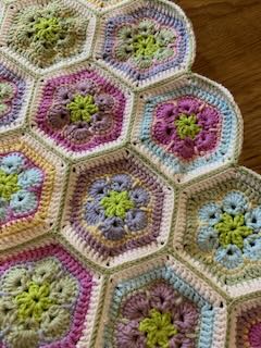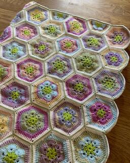 Bottenfärgen är vit medan vardera hexagon har mjukt pastelliga godisfärger. En favorit bland filtarna!